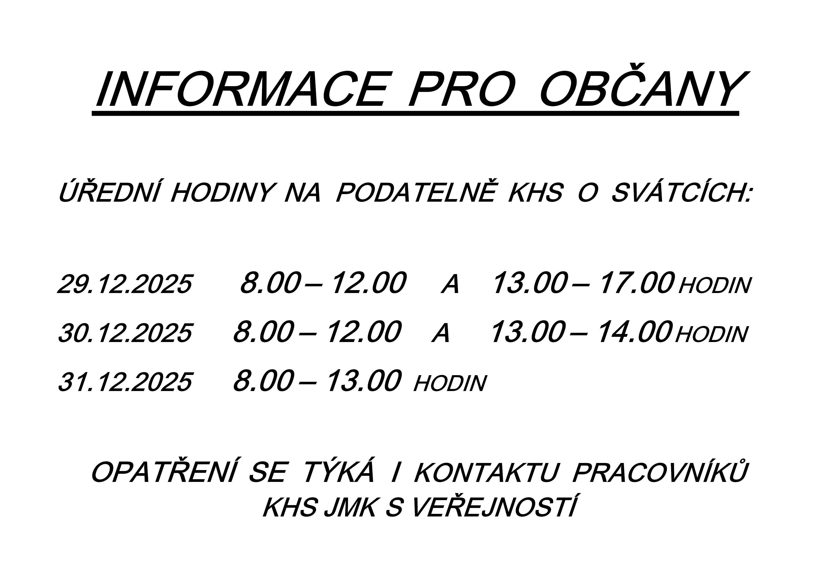Úřední hodiny KHS JmK dne 31.12.2025 (středa) pouze do 13.00 hodin