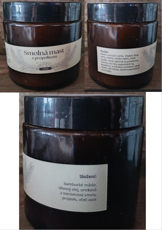 | 2026 / 69. | 2026 / 69. Smolná mast s propolisem, 120 ml - foto č.1 Nebezpečný výrobek 09.04.2026 |